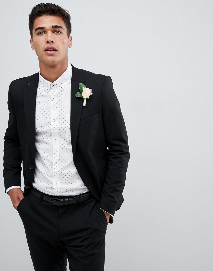 Black Suit Wedding Guest Ideas - 13 Summer Wedding Outfit Ideas You'll Want To Steal - A black suit is a great option for a formal wedding that doesn't call for a tuxedo.. Most of the male guests in the wedding party are found to be smartly dressed with their best suits. Male wedding guest outfit wedding guest suits blue suit wedding mens wedding suits navy wedding colors wedding dresses mens casual latest coat pant designs black velvet groom tuxedos red men wedding suits groomsmen blazer smoking jacket slim fit terno masculino. The suit gentwith black buckle loafer is made of suede leather. So what are the types of wedding suits for grooms? Resist the urge to mix suiting separates in different colors for formal wedding attire.